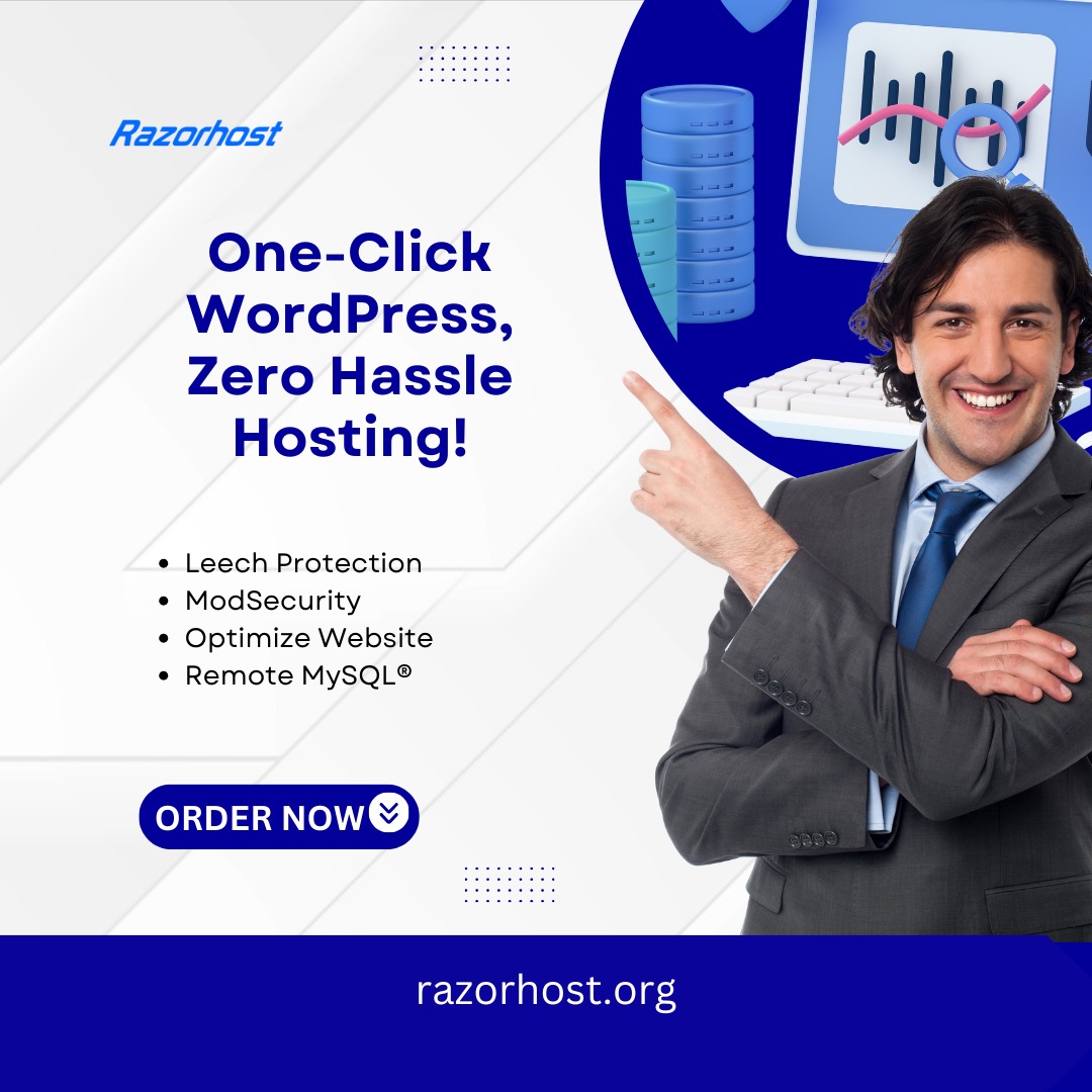Simplify your website setup with Razorhost's one-click WordPress installations. Enjoy unlimited SSD storage, free SSL certificates, and 24/7 expert support, ensuring a hassle-free hosting experience. Get your WordPress site up and running in no time with Razorhost.
